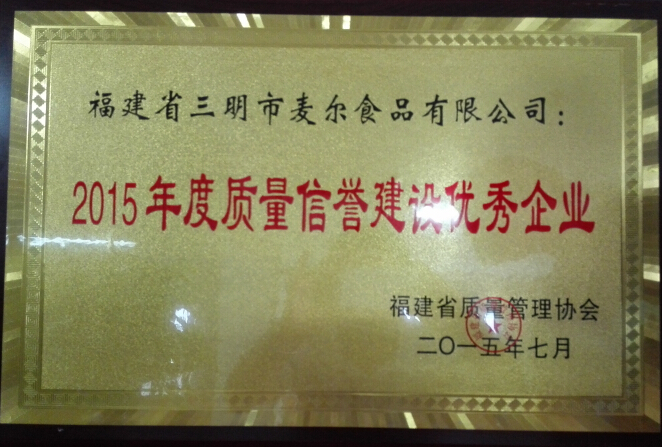 2015年8月11日,公司榮獲福建省“2015年度質量信譽建設優秀企業”稱號。 幾年來,公司始終認真貫徹《食品安全法》,積極按照《食品生產加工企業落實質量安全主體責任制》的要求開展有效工作。不斷加強員工的質量安全意識,建立、健全和完善食品安全管理制度,規范原輔材料采購、生產過程控制、銷售出廠檢驗和產品流通安全等各環節的行為,全心致力于為廣大消費者提供安心、放心食品和舒心的服務,取得了較大的成績,深受客戶和消費者的好評。