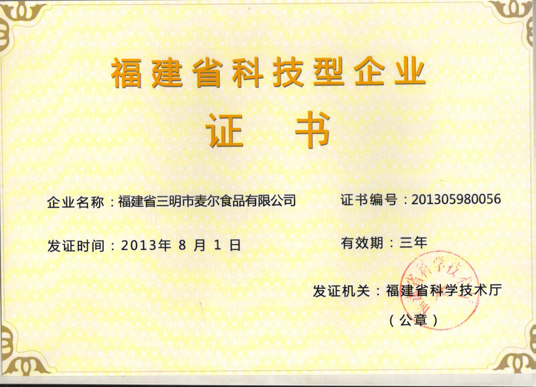 2014年1月9日,我司被福建省科學技術廳授予“福建省科技型企業”稱號。